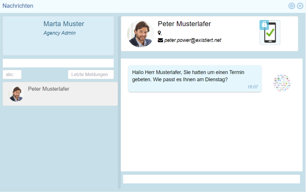 Um mit Ihren Kunden bestmögliche Kommunikation zu erreichen, sollten Sie immer erreichbar sein. Dabei hilft Ihnen die integrierte Chatfunktion im Vermittlerportal. Dazu muss der Kunde nur per App oder per Kundenportal mit Ihnen verbunden sein. Wie Sie die Kunden zur App oder Kundenportal Nutzung einladen, finden Sie auch hier.