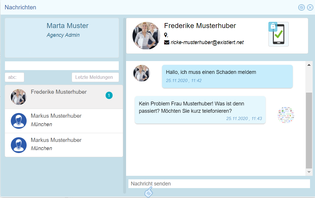 Die Chatfunktion erleichtert Ihren Kunden die Kontaktaufnahme mit Ihnen, auch im Falle eines Schadens.