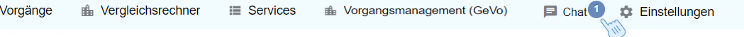 Mit einer Nummer am Menüpunkt Chat sehen Sie, dass Sie von einem Ihrer Kunden eine Chatnachricht erhalten haben.