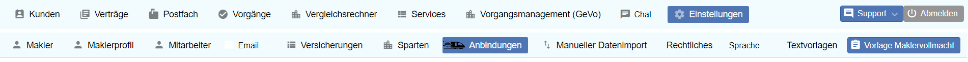 Hier können Sie alle Ihre Anbindungen zu den Extranets der Versicherer hinterlegen.