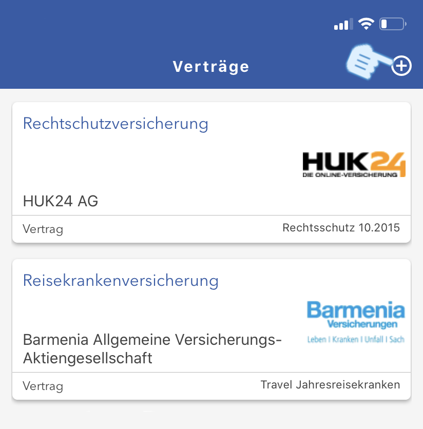 3. Ihr Kunde wählt unter dem Menüpunkt "Verträge" das "Plus" aus