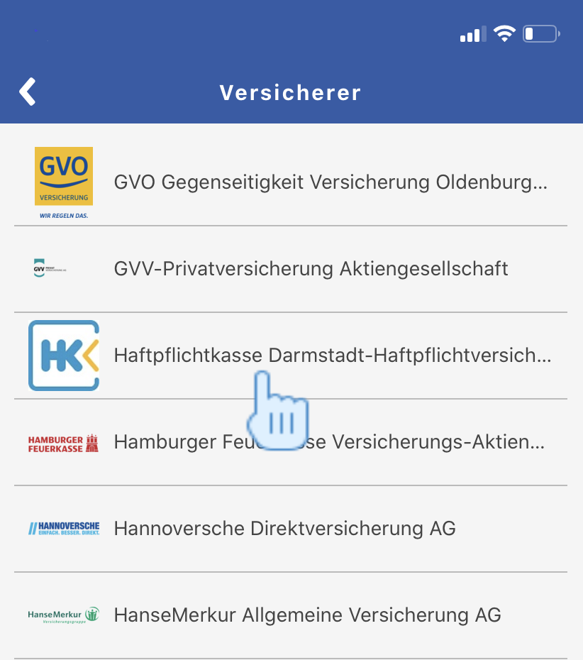 5. Im Anschluss wird der Versicherer vom Kunden festgelegt