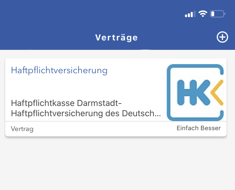 Hier als Beispiel der Kunde Martin Müller, er hat eine alte PHV von der Haftpflichtkasse Darmstadt.