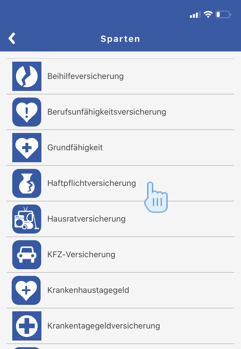 4. Der Kunde wählt die passende Sparte