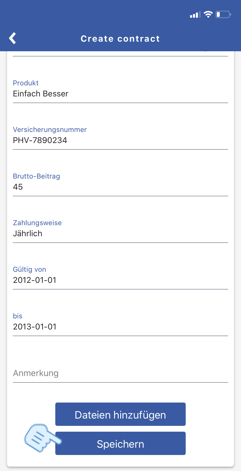 Optional können hier noch Vertragsdokumente angehängt werden