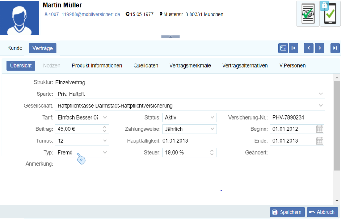 Der Vertrag ist nun als Fremdvertrag beim Kunden hinterlegt und Sie können diese Information im Rahmen einer Umdeckungsaktion nutzen.