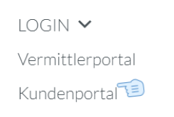 Hier finden Sie rechts oben den LOGIN-Bereich, den Sie bitte mit Klick auf die Option "Kundenportal" öffnen.