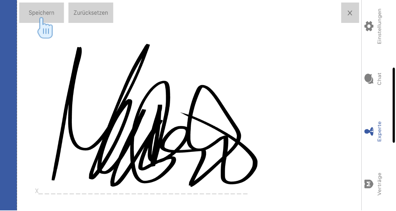 Unterschreiben Sie mit welchem Finger Sie wollen. Mit einem Klick auf "Speichern" wird Ihre Unterschrift gültig.