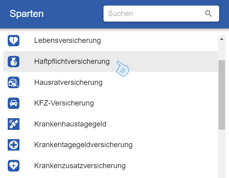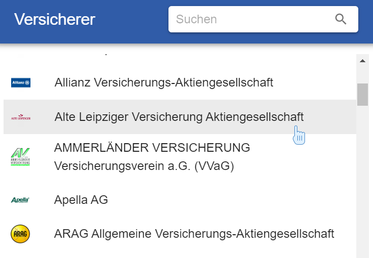 3. Wählen Sie nun den Versicherer aus, bei dem Sie die Versicherung haben