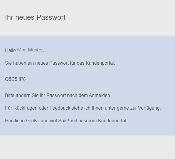 3. Es wird anschließend eine E-Mail in Ihr Postfach gesendet, die die neuen Zugangsdaten enthält.