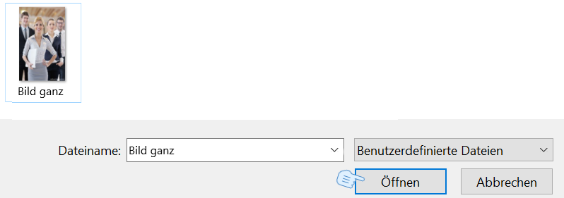 Dazu nur das Plus auf dem Bild drücken und durch ein Upload-Fenster können Sie sich ein Bild aussuchen.