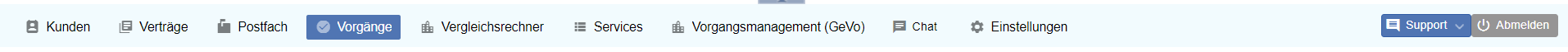 Hier können Sie nun Ihre alten Vorgänge sehen sowie neue Vorgänge anlegen.