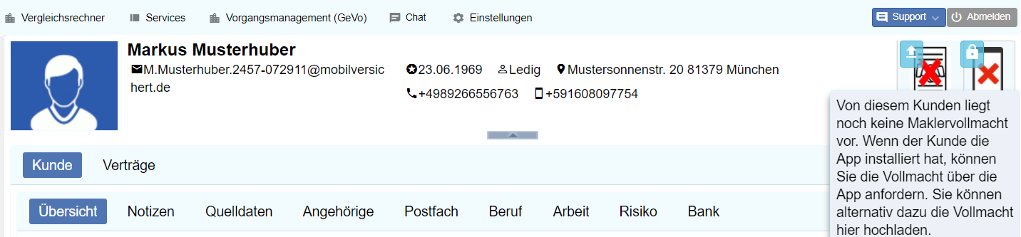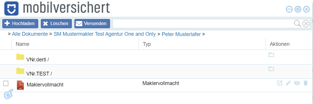 6. Hier können Sie sehen, dass die Maklervollmacht in den Dokumenten des Kunden hinterlegt wurde