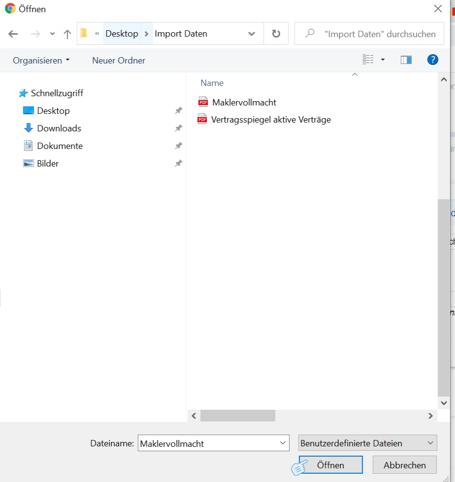 4. Die Maklervollmacht auswählen und mit "Öffnen" bestätigen