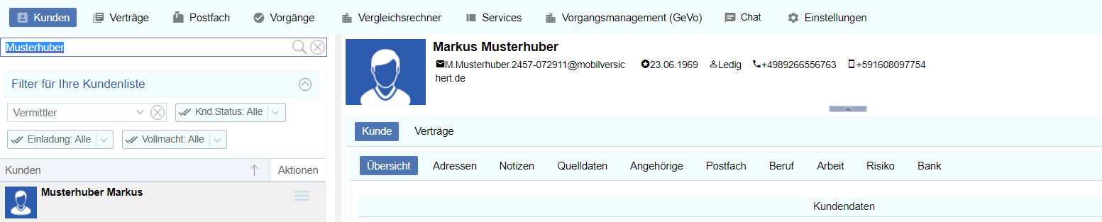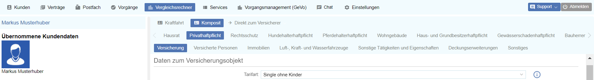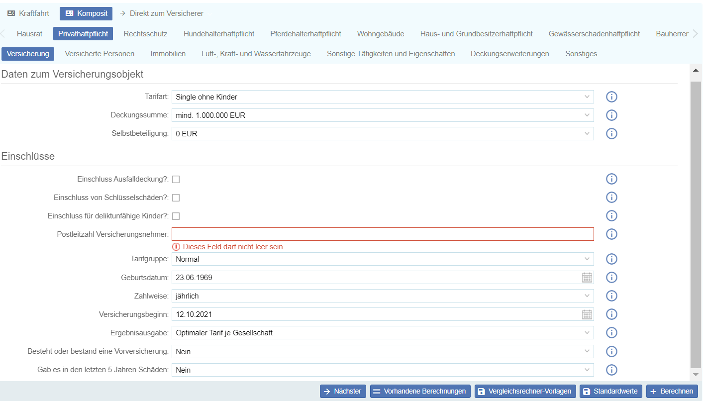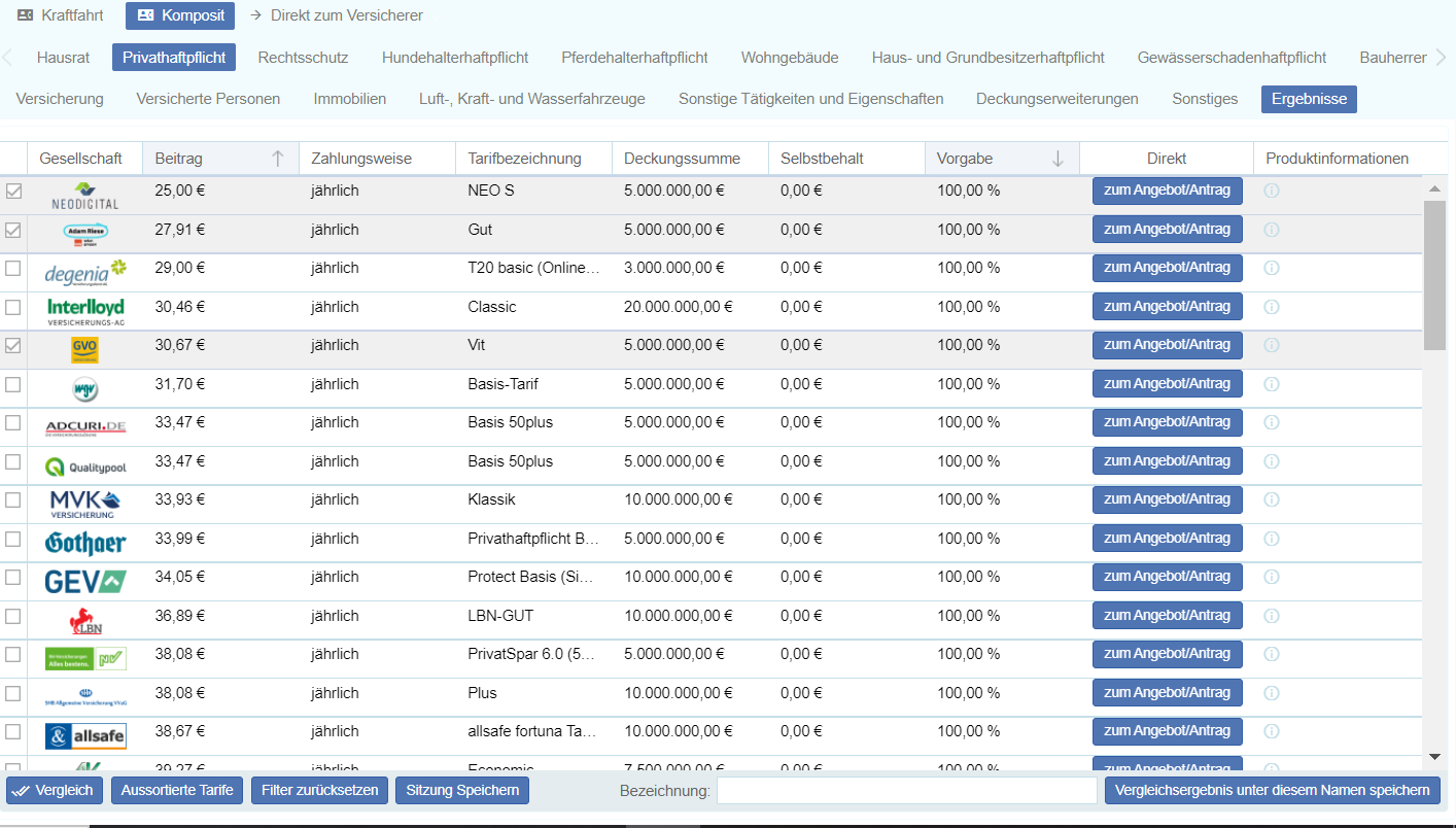 Der Vergleichsrechner ist ein Tool, dass Ihnen hilft, den richtigen Tarif zu finden, der den Anforderungen und Risiken Ihres Kunden am besten entspricht. Dafür vergleicht der Vergleichsrechner verschiedene Versicherungen und Tarife anhand Ihrer ...