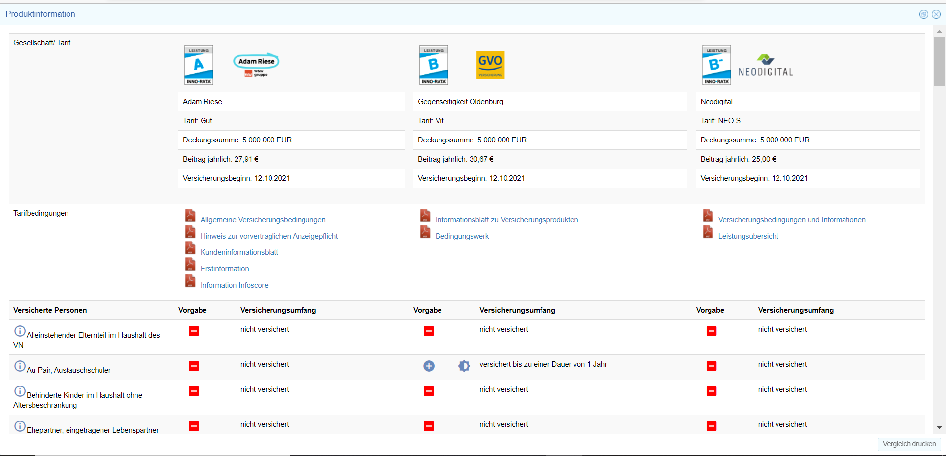 Diesen Vergleich können Sie über den Button „Vergleich drucken“ auch